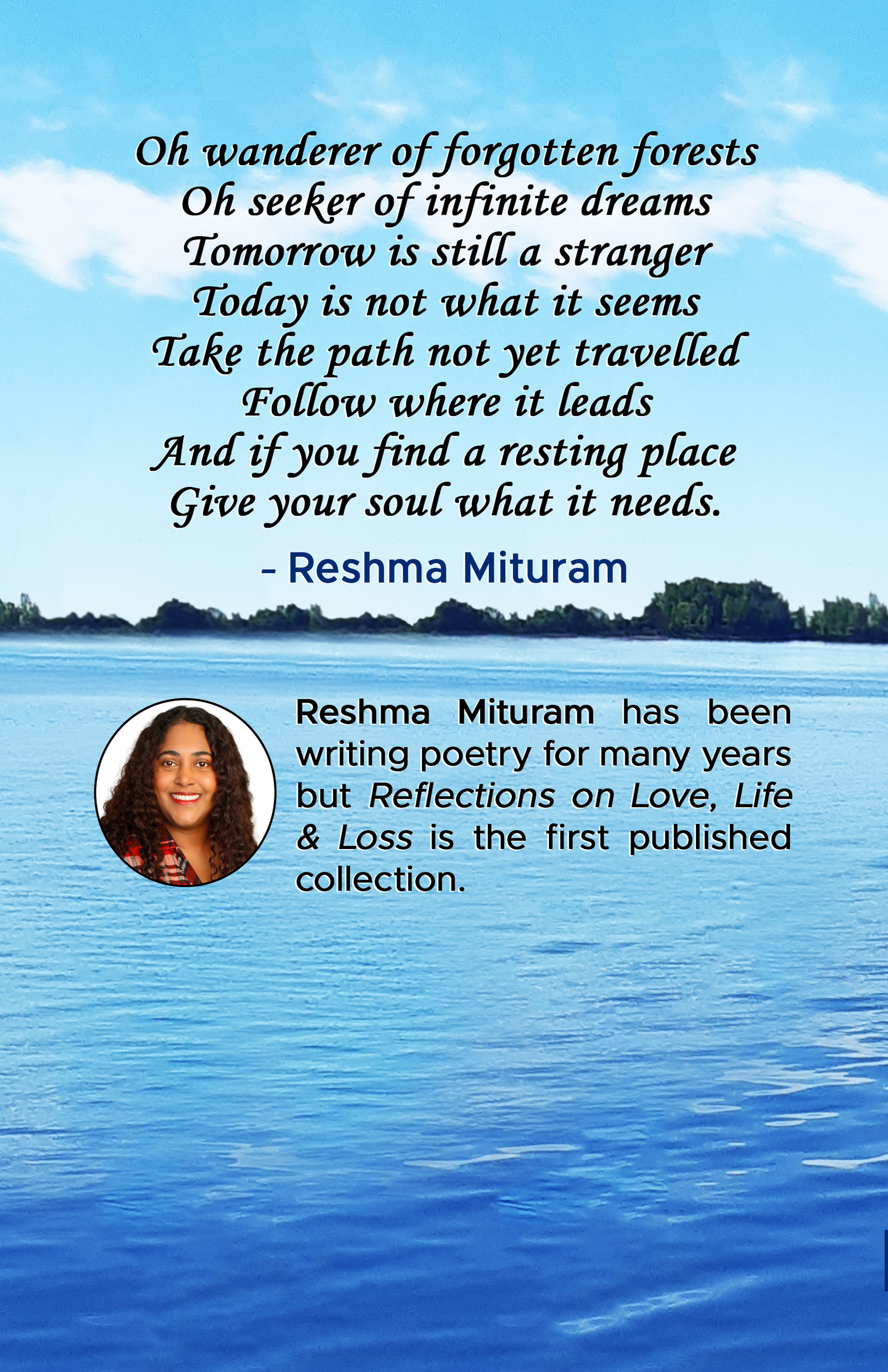When I began writing the poems in this book, it wasn’t for the purpose of publishing. It was so that I could make room in my head so that the other projects I’ve been working on since I was 18 could have a chance. I started putting Reflections of Love, Life and Loss on paper in June 2019 along with another collection, Earth Songs, which I have yet to present to the world.